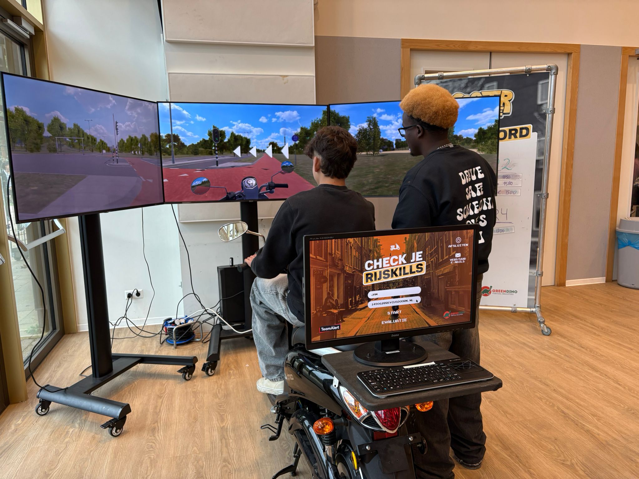 Woensdag 8 oktober heeft TeamAlert onze school bezocht met een scootersimulator. Leerlingen mochten hun scooter skills meten door zo goed mogelijk maar vooral veilig een traject af te leggen. En dat was soms best lastig!